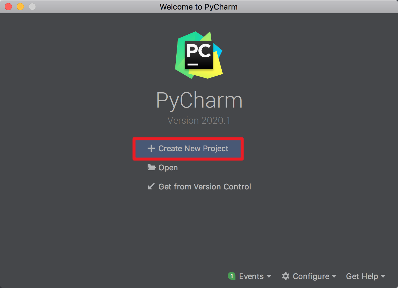 1. 打开 Pycharm,选择 Create New Project,创建一个新项目