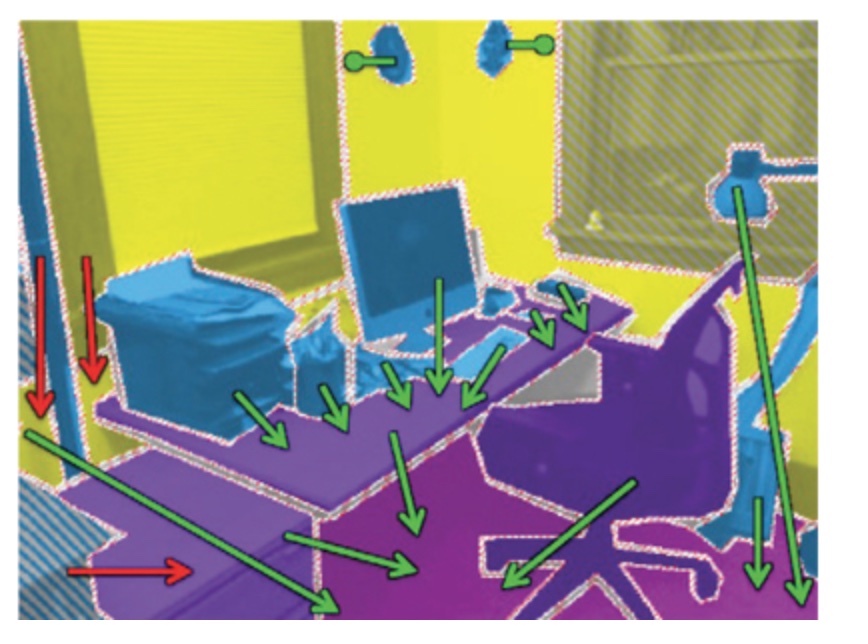 随着廉价的扫描器的到来,带有深度信息的数据集开始出现并被广泛使用。NYUDv2数据集(http://cs.nyu.edu/∼silberman/projects/indoor scene seg sup.html)包含1449张由微软Kinect设备捕获的室内的RGB-D图像。其给出密集的像素级别的标注(类别级别和实力级别的均有),训练集795张与测试集654张均有40个室内物体的类,该数据集由于其刻画室内场景而格外重要,使得它可以用于某种家庭机器人的训练任务。但是,它相对于其他数据集规模较小,限制了其在深度网络中的应用。
