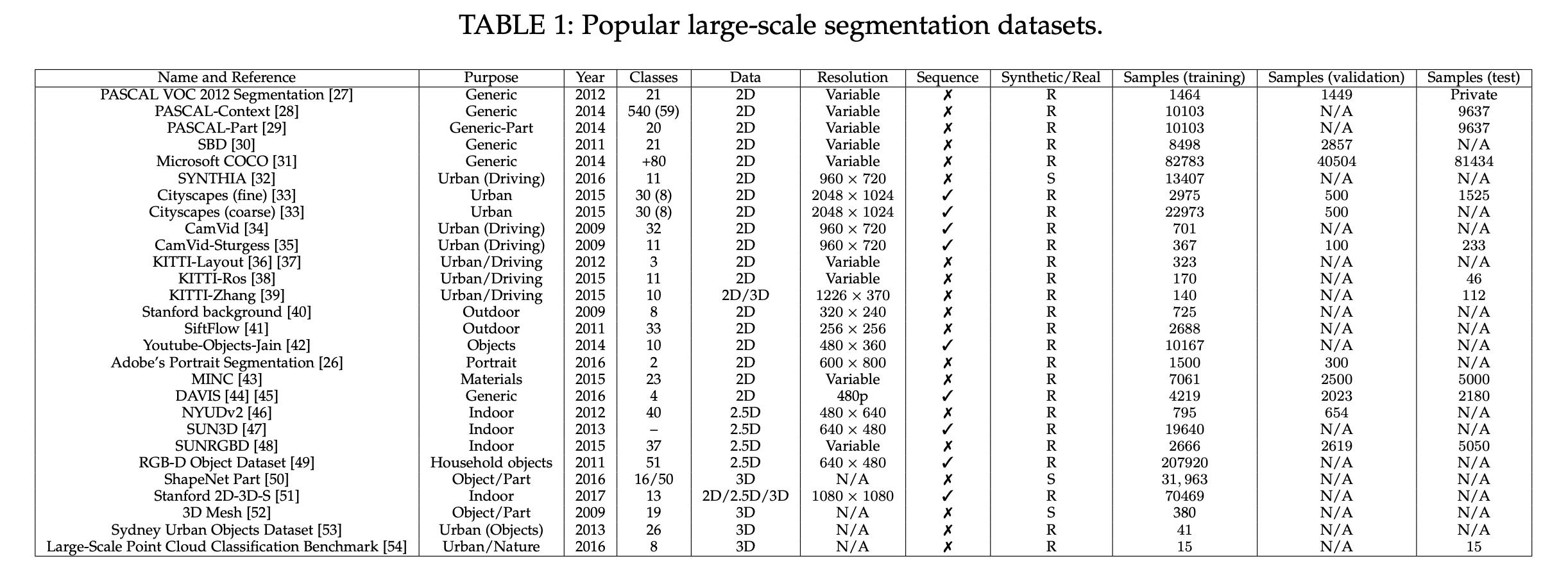 介绍语义分割领域最近最受欢迎的大规模数据集。所有列出的数据集均包含像素级别或点级别的标签。这个列表将根据数据内在属性分为3个部分:
