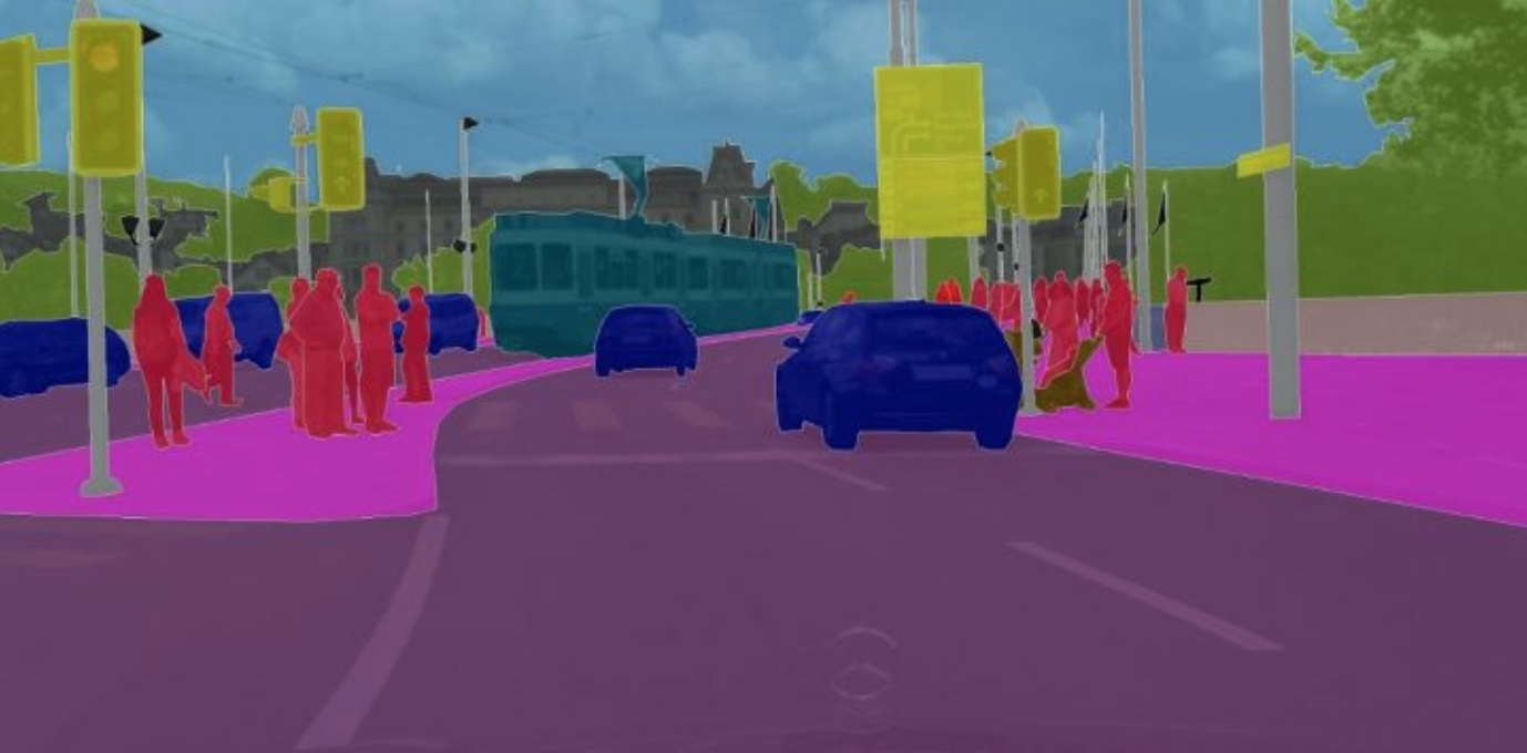 - 语义分割就是把图像中每个像素赋予一个类别标签(比如汽车、建筑、地面、天空等),标注为人,羊,狗,草地。而不需要羊1,羊2,羊3,羊4,羊5等