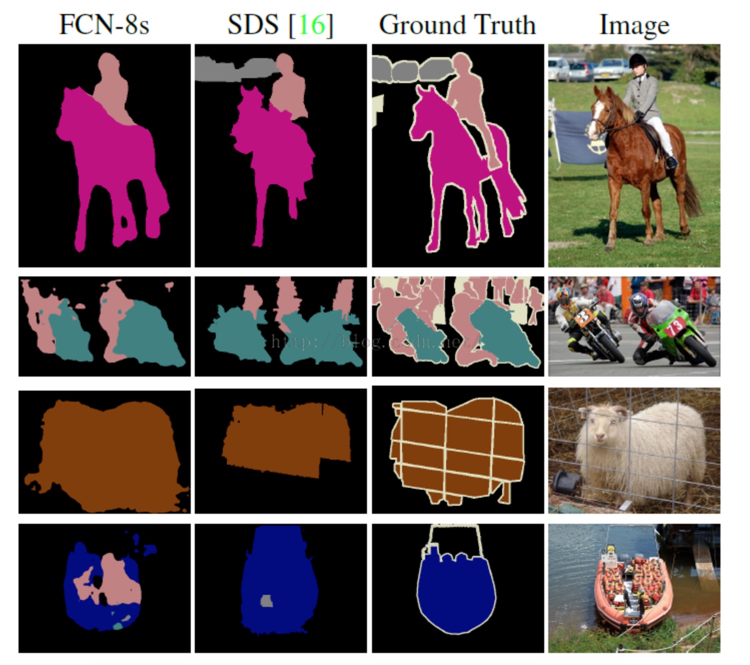 - 第三种方法则是在FCN-16s的基础上,进行了与第三层池化操作后的结果相迭加,再对结果进行8倍上采样的FCN-8s。显然,其生成的语义标签图像是三种情况中最好的。