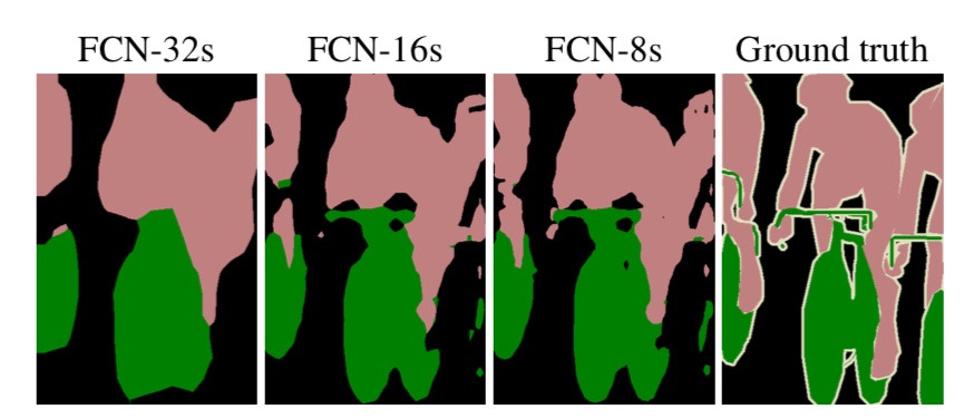 得到的结果还是不够精细。进行8倍上采样虽然比32倍的效果好了很多,但是上采样的结果还是比较模糊和平滑,对图像中的细节不敏感