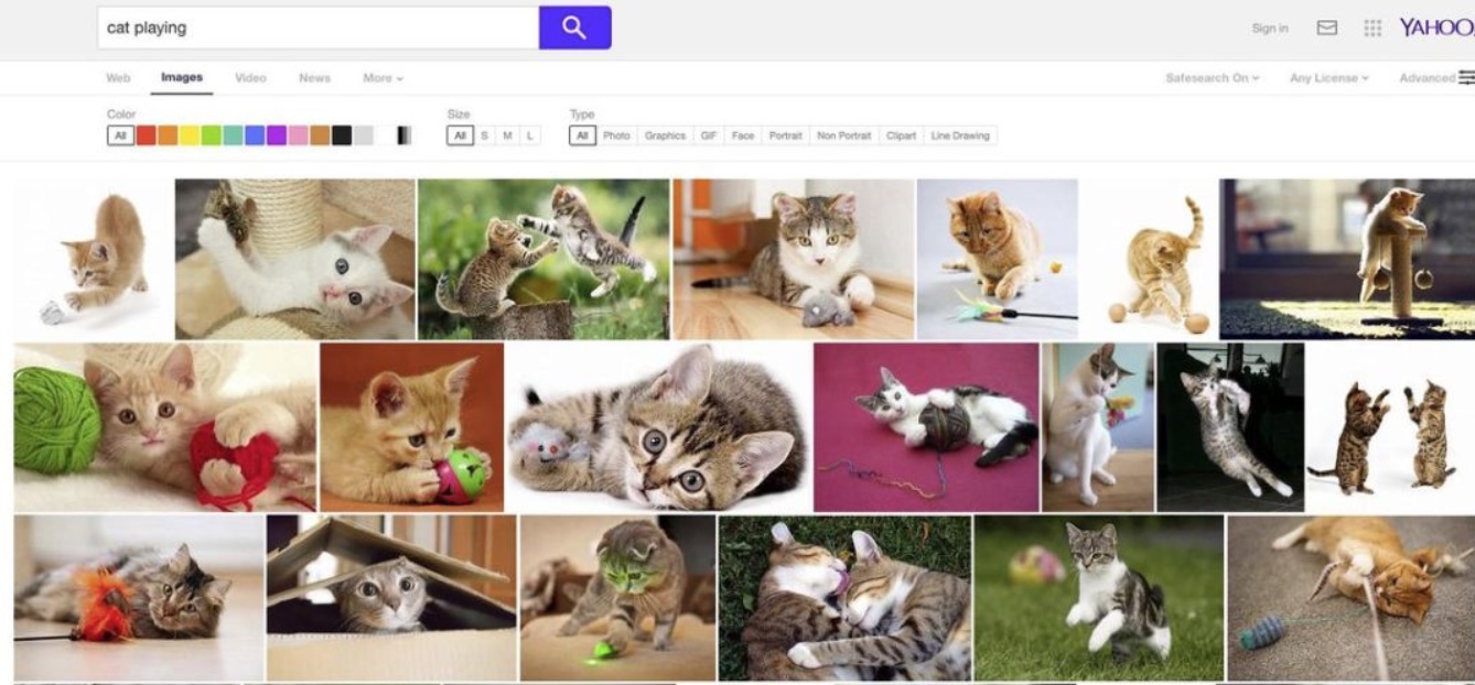 Yahoo 仅支持关键词搜索,搜索结果同样不错,如下图所示。