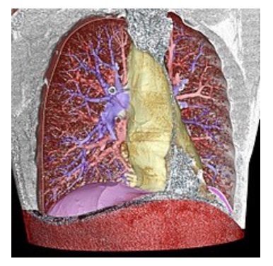 胸腔 3D 渲染 CT 扫描图像的体分割。(图源:https://en.wikipedia.org/wiki/Image_segmentation)