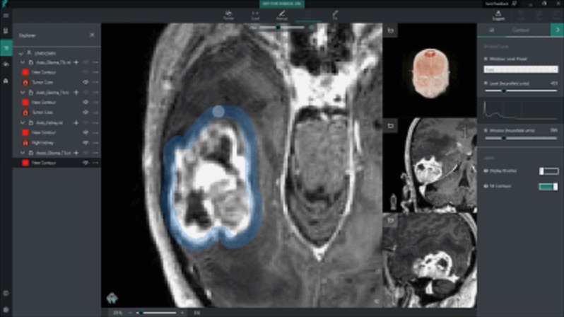 在医疗行业中,微软的 InnerEye 是帮助放射科医生、肿瘤专家和外科医生处理放射图像的宝贵工具。其主要目的是从恶性肿瘤的 3D 图像中准确识别出肿瘤。基于计算机视觉和机器学习技术,InnerEye 输出非常详细的肿瘤 3D 建模图像。以上截图展示了 InnerEye 创建的对脑部肿瘤的完整 3D 分割。从上述视频中,你可以看到专家控制 InnerEye 工具,指引它执行任务,InnerEye 像助手一样运行。