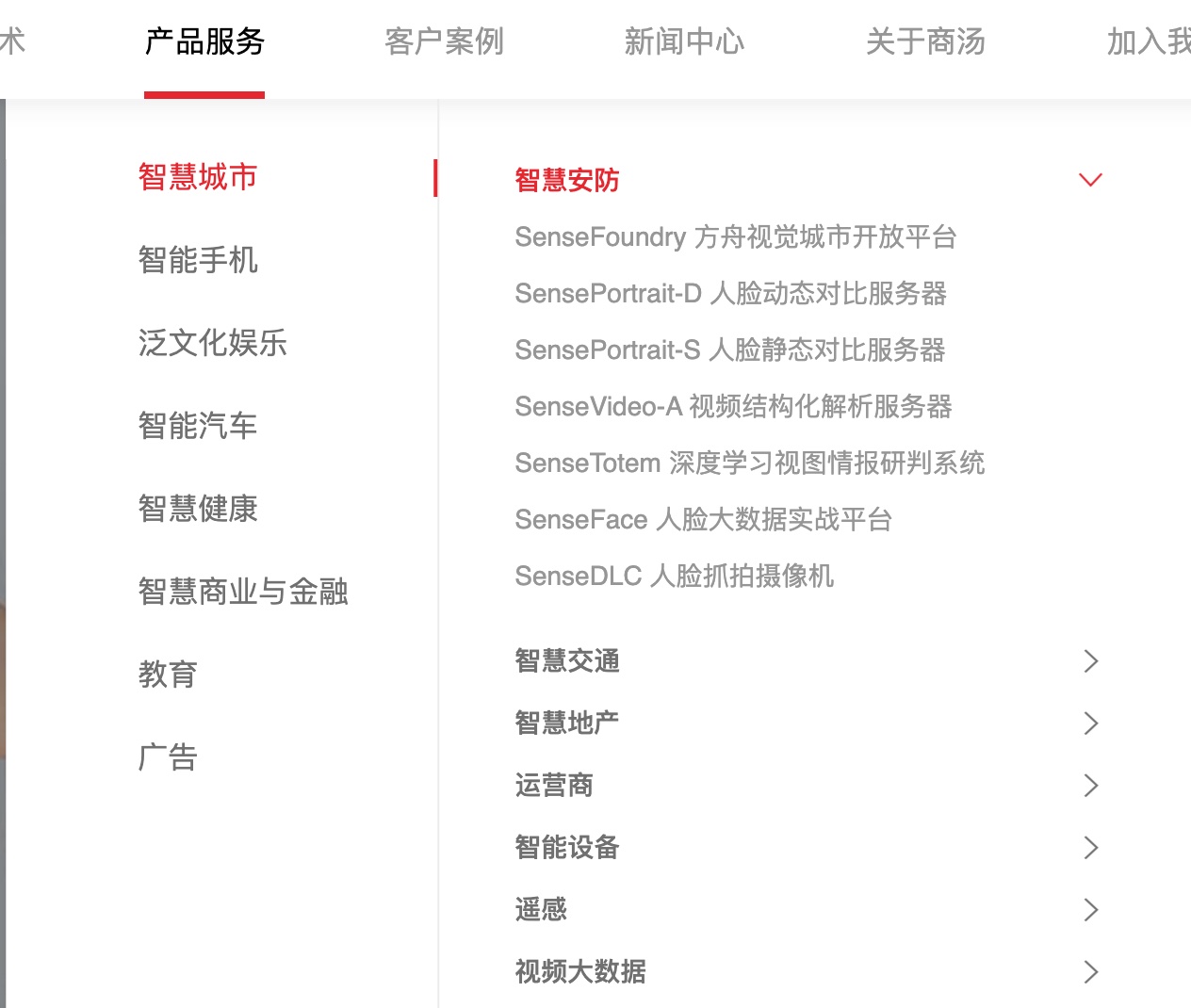 这里给出商汤公司的应用解决方案系列图:比如说商汤公司做的一些计算机视觉方案:https://www.sensetime.com/Service/。