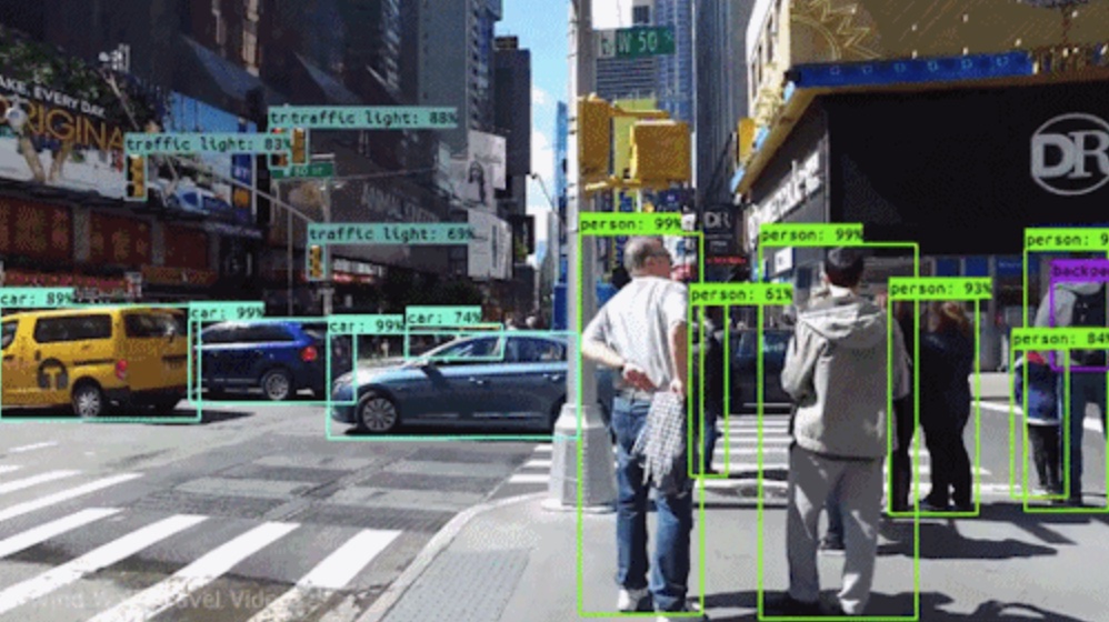 你是否思考过,自动驾驶汽车如何「看」路?计算机视觉在其中扮演核心角色,它帮助自动驾驶汽车感知和了解周围环境,进而恰当运行。计算机视觉最令人兴奋的挑战之一是图像和视频目标检测。这包括对不同数量的对象进行定位和分类,以便区分某个对象是交通信号灯、汽车还是行人,如下图所示:
