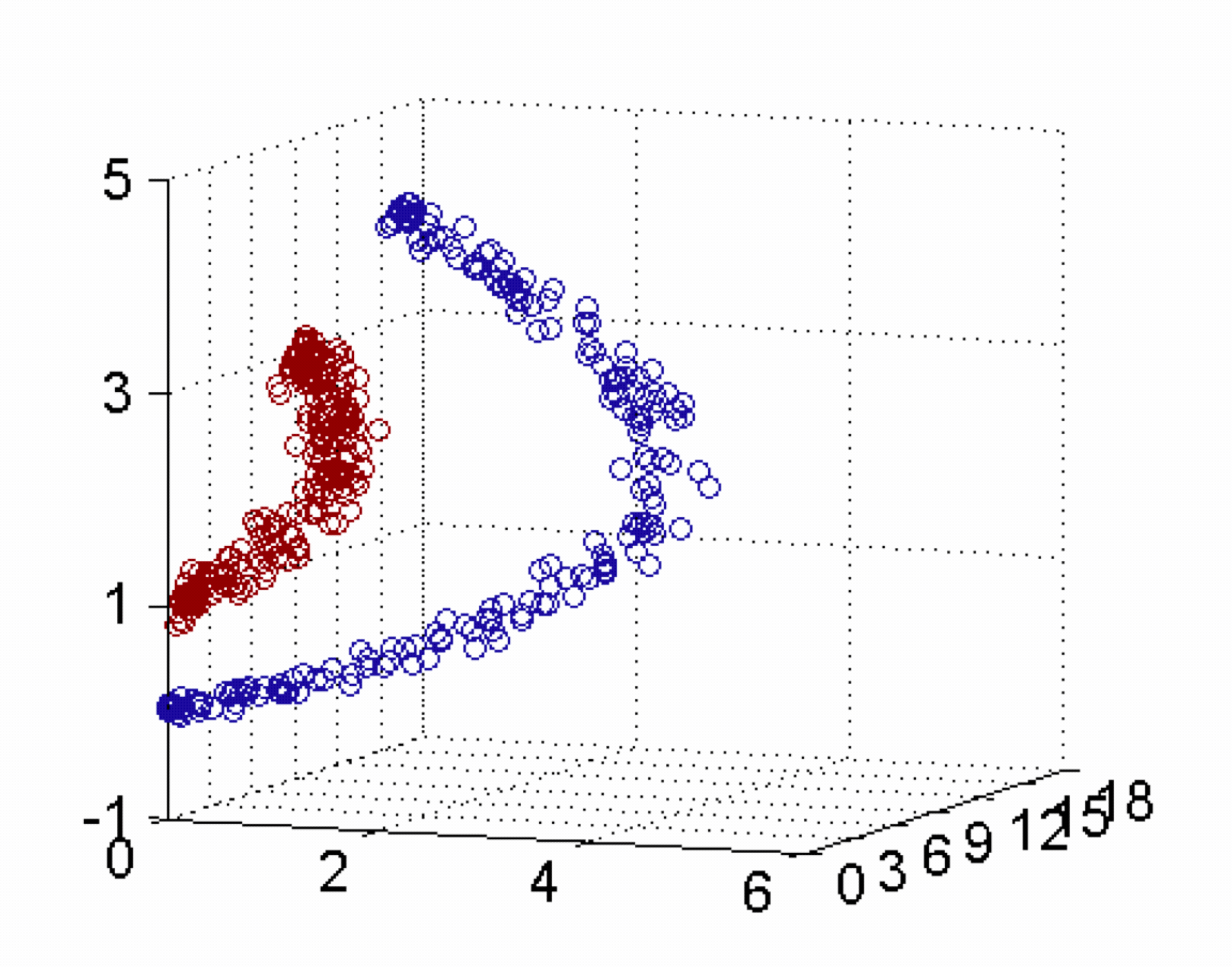 三维中的这个判决边界,再映射回二维空间中:是一条双曲线,它不是线性的。