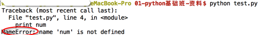 print(num)# 如果num变量没有定义,那么会产生 NameError 异常