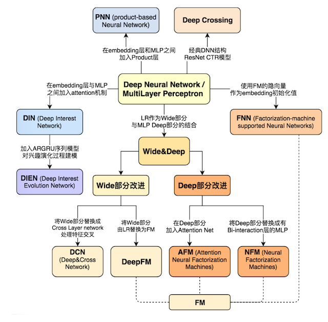 2010年FM被提出,特征交叉的概念被引入CTR模型;2012年MLR在阿里大规模应用,其结构十分接近三层神经网络;2014年Facebook用GBDT处理特征,揭开了特征工程模型化的篇章。这些概念都将在深度学习CTR模型中继续应用,持续发光。